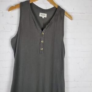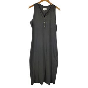 MATE THE LABEL AVERY HENLEY Midi Cotton Knit DRESS Size L CHARCOAL GRAY Sleeveless