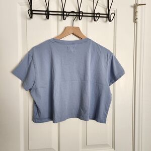 Chic light blue crop top by MATE the Label. Soft fabric, perfect for casual wear.