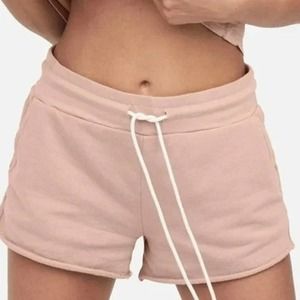 Cozy pink sweatshirt and shorts set. Soft fabric. Relaxed fit.