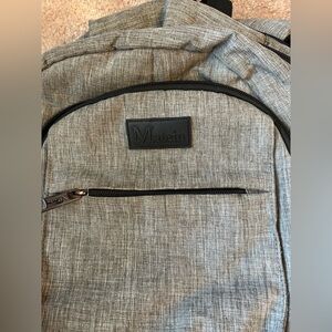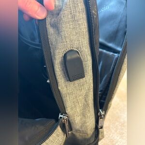 Stylish gray backpack perfect for everyday use. Features multiple compartments for organization. Also has built in USB outlet as shown.