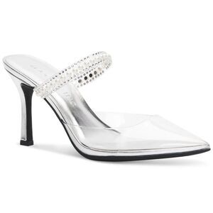 MATEO BY INC Womens Clear Embellished Cindy Pointy Toe Stiletto Dress Heeled Mules Shoes 5.5