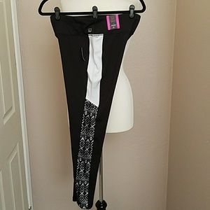 Hit the track in style with Material Girl Active's leggings with a cool 🆒 contrast colorblock panel and laser cut detailing from the knee down. 😎 Inseam 29"/Waist Approx. 16"(32")...91% polyester 9% spandex. Keep it gorgeous even when you're working out in these fun leggings from Material Girl Active❗🖤