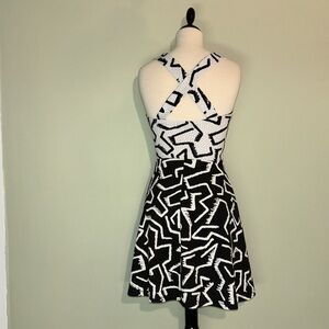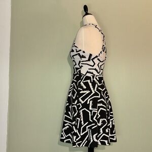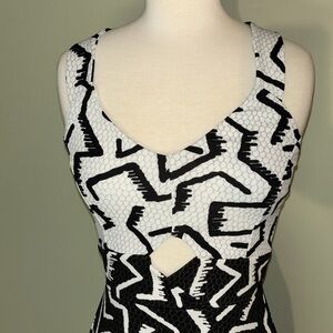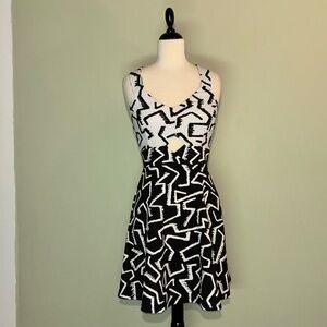 MATERIAL GIRL black/ white vneck sleeveless keyhole mini dress women’s small