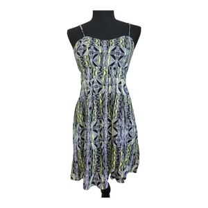 MATERIAL GIRL geometric print sleeveless blouse black bright yellow/green sz M
