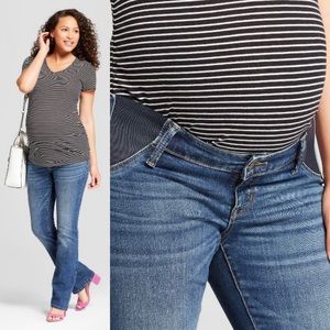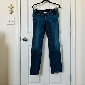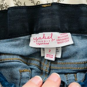 Jeans are size 2, fit under-belly, and are like new and I barely wore them. 91% cotton, 7% recycled polyester, 2% elastane