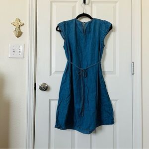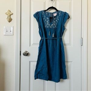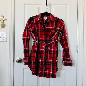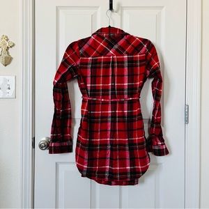 Blue denim tunic dress and red plaid tunic top are both 100% cotton and XS