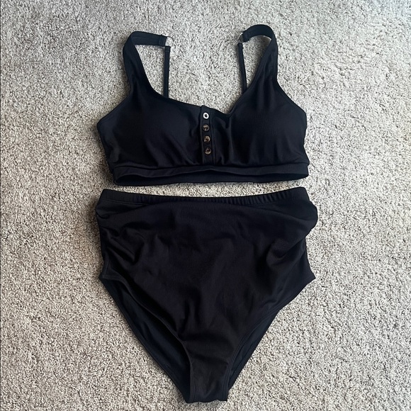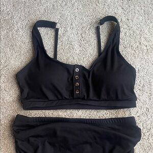 Stylish maternity black ribbed bikini set with bottoms and button detail on the top. Used only a few times.