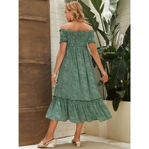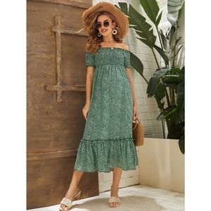 MATERNITY floral Print Off Shoulder Shirred Split Thigh midi Dress green