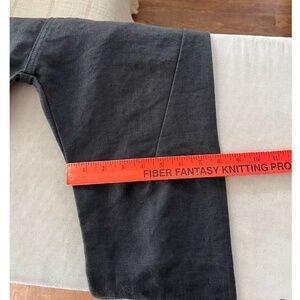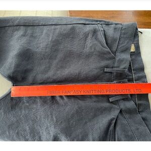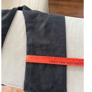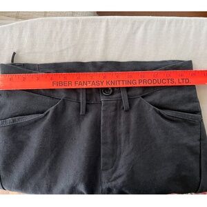 These amazing pants are made from a non-stretch, heavy hemp/cotton blend that feels like denim. New with tags. No issues. Color is dark steel gray.