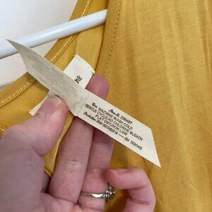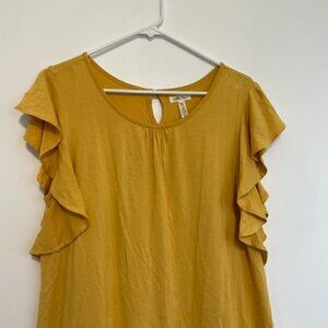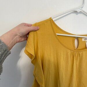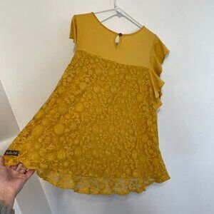 MATILDA JANE Bocce Ball Lace Accent Top Mustard Yellow Lace Back Short Sleeve M