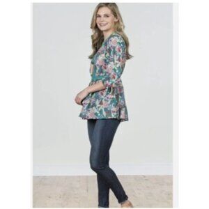 MATILDA JANE Camp MJC Kookaburra Top tunic womens size large floral Swiss dot