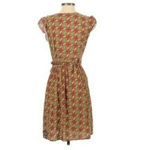 MATILDA JANE Cheerio Wrap Small Wrap Dress Green Red. Condition is "Pre-owned". Ruffles, cap sleeves, unlined, lightweight, smoke free pet free home.
