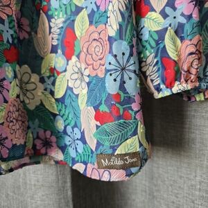 This relaxed-fit blouse by Matilda Jane features a vibrant pink and blue graphic design with pleated details. The long sleeves and flowing silhouette offer a comfortable yet stylish look, perfect for casual outings. The soft fabric ensures a light and airy feel, making it a versatile addition to your wardrobe.