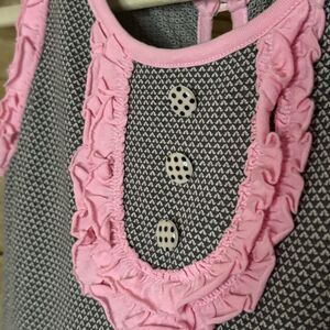 RUFFLED MIXED PATTERN AND MATERIAL DRESS. ROUND NECK BUTTONS DOWN BACK. NO FLAWS. OFFERS WELCOME.