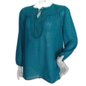 MATILDA JANE Tunic, L, Teal, Swiss Dots, Eyelet Yoke, Long sleeves, Tie neck