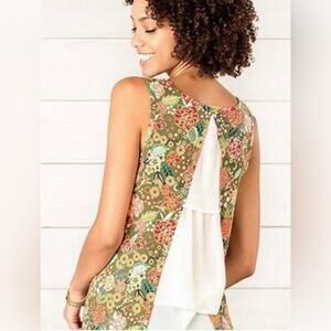 MATILDA JANE Women’s Sleeveless Layered Casual Floral Green Tank Flowy Sz Small