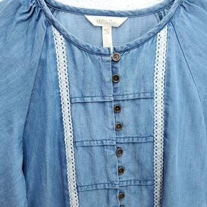 MATILDA JANE Style# 3411O16T Lyocell Chambray Embroidered Flutter Sleeve Top