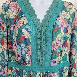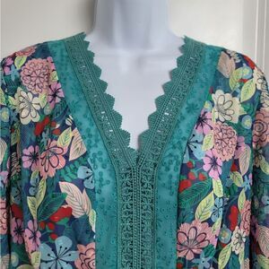 New without tags Kookaburra top from Matilda Jane. Crochet style pattern on neckline and florals all over. Size large