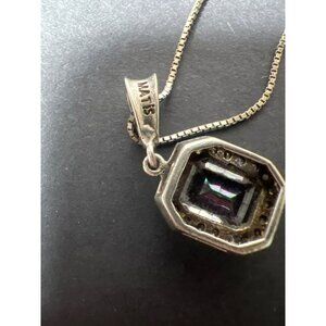 The pendant is paired with a classic Italian 925 box chain, creating a sophisticated look that sparkles with color and light.