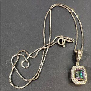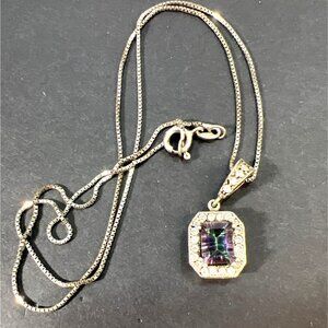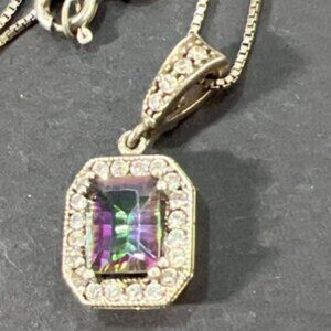 • Mystic Topaz with sparkling Halo Italian 925 Box chain