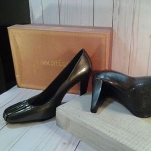MATISSE classy heels for any occasion. Very comfortable if your day consist of walking and standing for long periods of time. Color titled - Rockstar Gray, however looks like a "shiny hunter green." Heel: 3 - 1/2. Original Box with shoes.