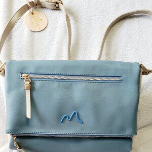 MATMAZEL "Katerina" Two Compartment- Crossbody Purse- Handbag- Blue & Cream