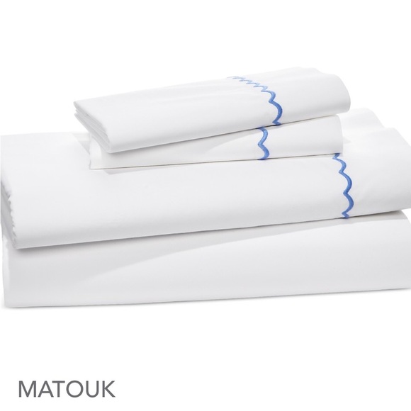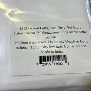 MATOUK Astrid Cotton Duvet Cover Set. Color: white/Azure, Full/Queen