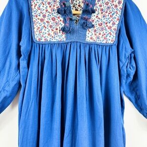 MATTA 100% cotton beautiful blue quilted midi dress NWT