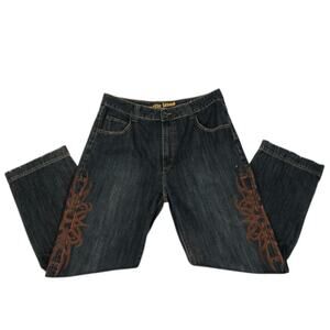 MATTE Embroidery Print Straight Jean Men 36X32 Blue Stylish Unique Premium Rave