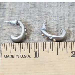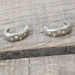 MATTE Silver-tone Rhinestone Embellished Huggie Hoop Earrings