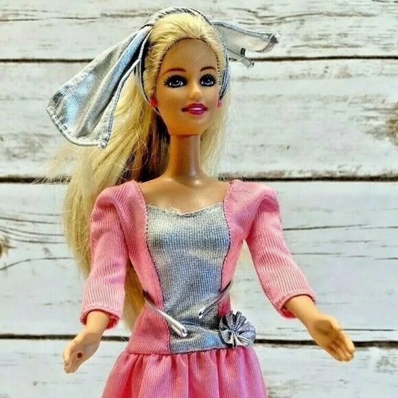 MATTEL BARBIE Blonde Hair Blue Eyes Pink Gray Long Dress 12" Tall