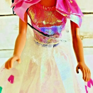 MATTEL BARBIE Blonde Hair Blue Eyes Pink White Gown Outfit 12" Tall