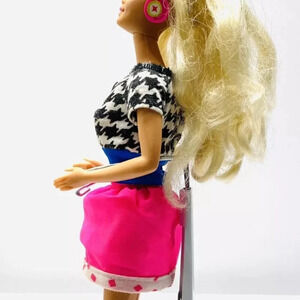 MATTEL BARBIE Doll Blond Hair Blue Eyes Earrings Two Piece Outfit 12" Tall Used