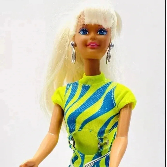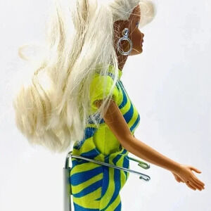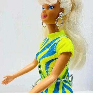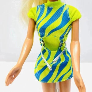MATTEL BARBIE Doll Blond Hair Blue Eyes Green Bodysuit Dress Earrings 12" Tall