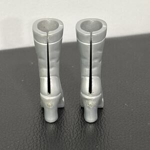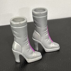 The product is a pair of silver replacement boots for Barbie dolls from the 2007 Fashion Fever collection by Mattel. These 12-inch plastic boots are designed for girl dolls with silver hair, staying true to the original product line. Perfect for collectors or Barbie enthusiasts looking to complete their Fashion Fever doll ensemble from the year 2007, these original boots are a stylish accessory for any Barbie doll in the collection.