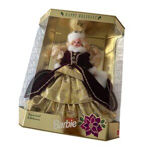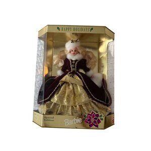 Celebrate the festive season with the 1996 Happy Holidays Barbie. This limited edition doll features a stunning blonde look and comes in original packaging, perfect for collectors.