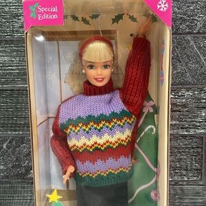 MATTEL VINTAGE 1998 NIB TREE TRIMMING BARBIE 22967 with A Punch-out Tree To Decorate with Barbie and Hair Brush. SHES PERFECT ENJOY!