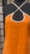 MATTHEW BURCH CROSS STRAP CUT OUT LINEN MINI DRESS, ORANGE WITH CREAM COLOR TRIM, UNLINED WITH HIDDEN BACK ZIPPER CLOSE, ADJUSTABLE CRISSCROSS SHOULDER STRAPS, RUNS SMALL, BUT ITS XXL, PRE OWNED IN EXCELLENT CONDITION