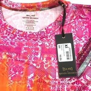 USA PRO BY MATTHEW WILLIAMSON Lace Up T Shirt size 6 (S/M), Add this statement T-shirt to your gym attire, This durable T-shirt combines an iconic print with athleisure factors, such as flexibility, stretch recovery, muscle compression and moisture management. This top features a crew neckline, contrasting cords at the side hems and stitched logo detailing.shoulder 15", Chest 19", length 24"