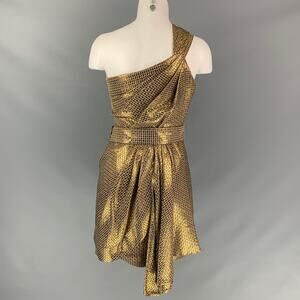 MATTHEW WILLIAMSON Size 4 Gold Metallic Cotton Blend Geometric Cocktail Dress