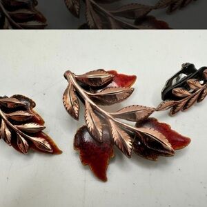 MATTISSE RENOIR VINTAGE COPPER ENAMEL BROOCH & CLIP EARRINGS SET