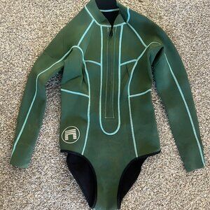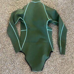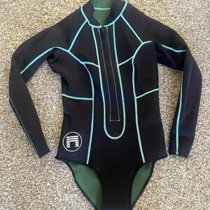 Description from website: On the beach or in the water the Miriam is the perfect all-around women's wetsuit on the planet. This warm water reversible suit is made with Matuse’s Hydrasilk Nylon and constructed with a 2MM body, and 1MM arms + side panels, making the Miriam the perfect all-around wetsuit for the water or the beach. Ichiban infused.