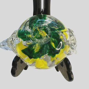 Maude & Bob St Clair glass, ringholder, vintage art glass teapot, signed 1981 St Clair paperweight, yellow rose art glass, controlled bubble paperweight, collectible American glass, floral glass teapot,