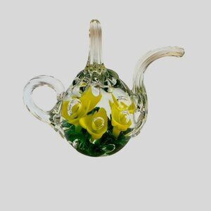 MAUDE & BOB ST CLAIR 1981 VTG Glass Teapot Paperweight Controlled Bubbles Roses