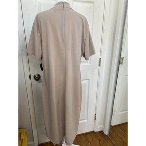 MAUDYE JAYNE WOMEN'S Sz 2 Mock Neck SHORT SLEEVE DRESS In Beige NWT. Rounded hem
