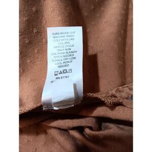 The neutral brown color has a slightly peachy undertone which makes it easy to pair with a variety of bottoms and accessories.