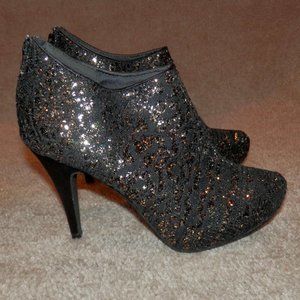MAURICES BLACK AND GOLD SPARKLE FLECKS BOOTS * 4 IN HEEL * ZIP UP HEEL* SIZE 6 M
