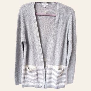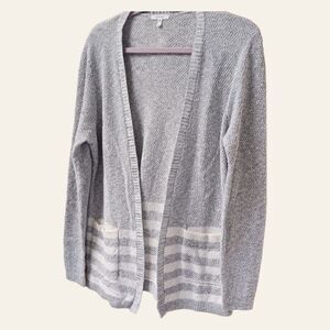 Size Large Bust: 44" & Length: 31". All measurements are ; mm. Gray & Cream are the Colors of this Nice Cardigan.