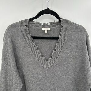 MAURICES Gray Knit Destructed Distressed V-Neck Pullover Sweater Size XL