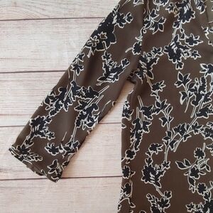 Adorable semi sheer popover! High low cut with 3/4 sleeves. Great tucked in and layered with a cardigan or blazer or leggings. I wore this just a few times and the color is just right for me. Olive green and black. (G1)